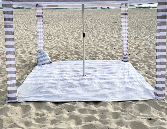 3.3m x 3.3m Cool Grey Striped Beach Mat with Hole + Beach Bag