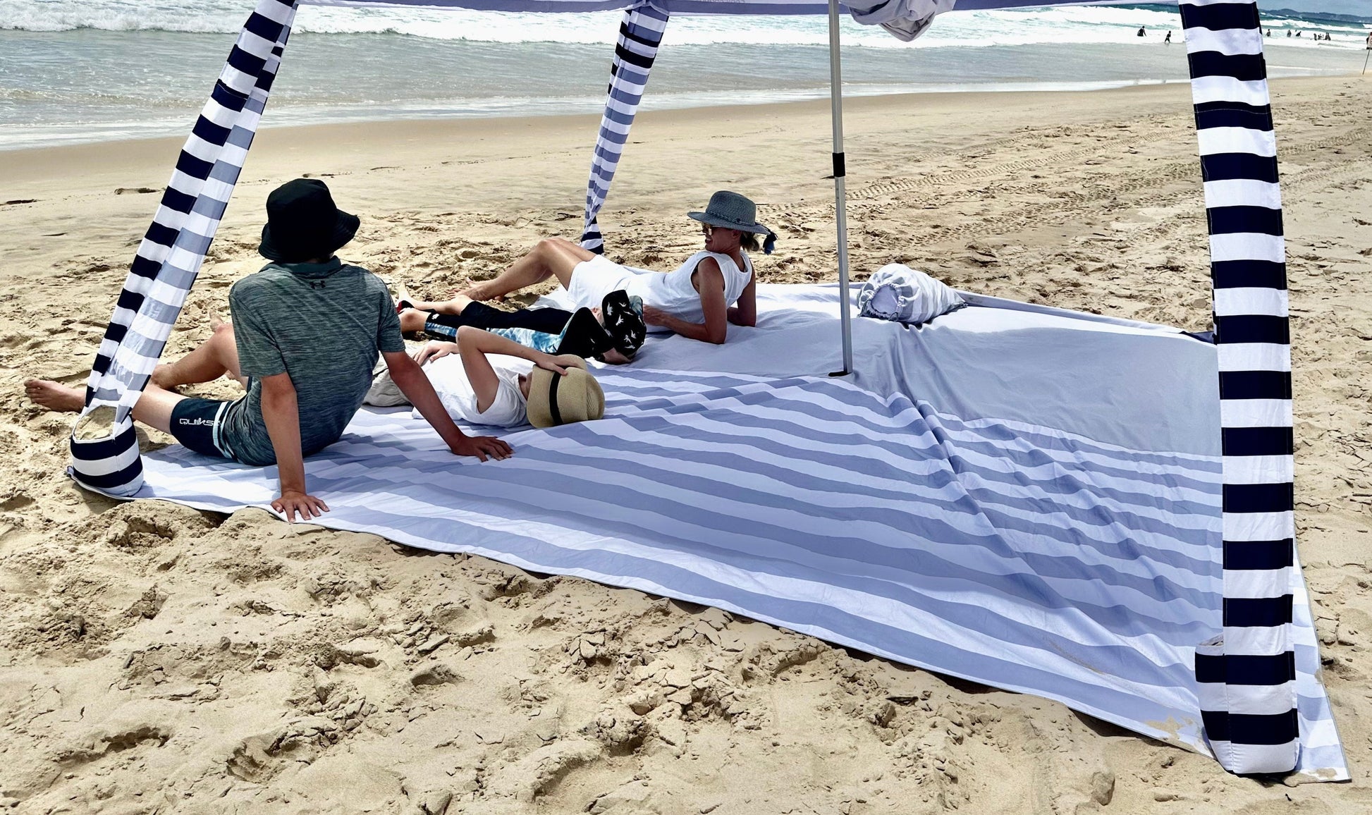 With any time spent out doors we recommend using a 50+ sunscreen and following the directions of the relevant sun protection health authorities. Please always take caution with applying (and reapplying) sunscreen, wearing sunglasses, a hat and protective clothing noting that - holey mats and shade devices do not protect you fully from the sun or uv rays.